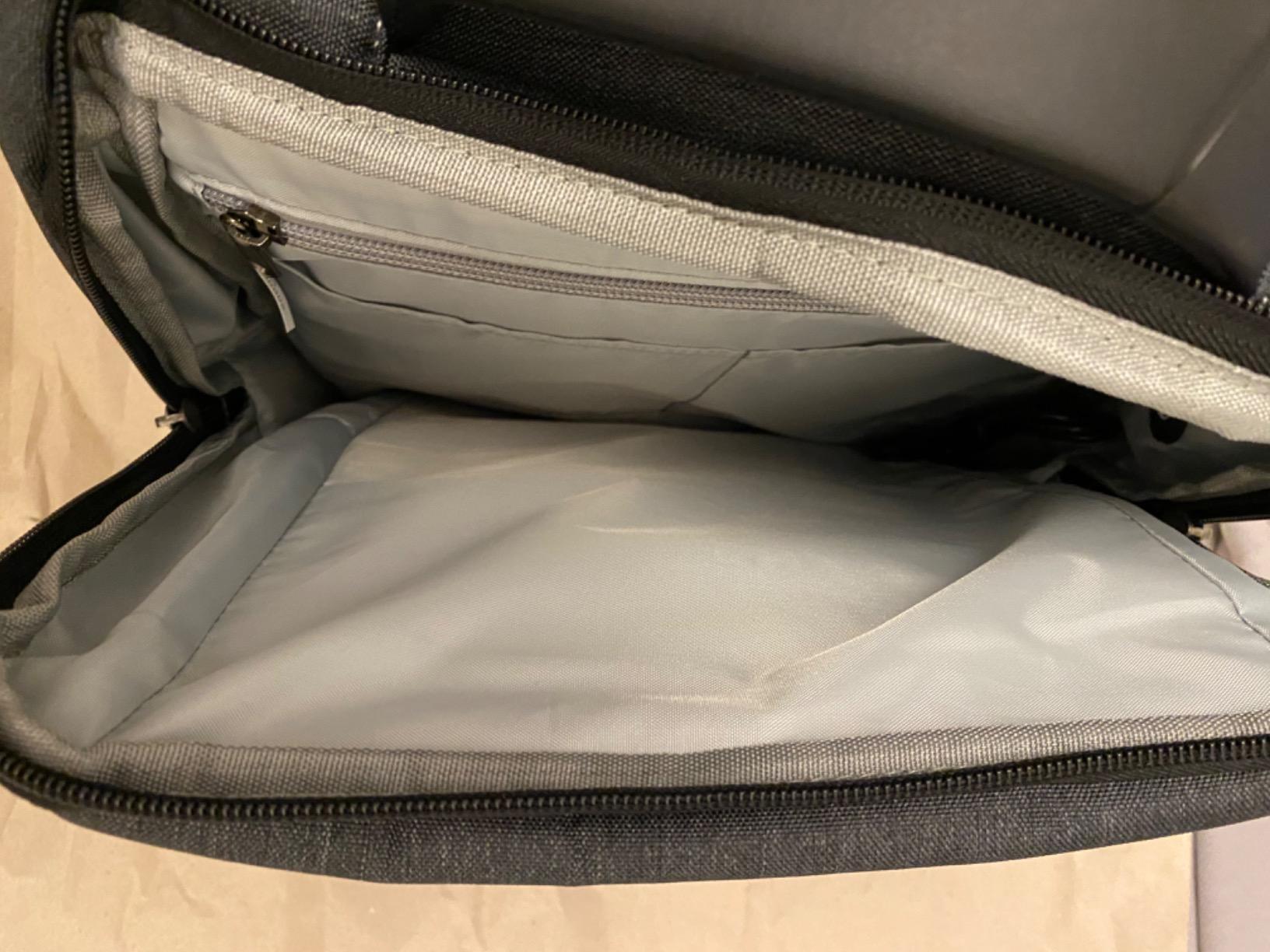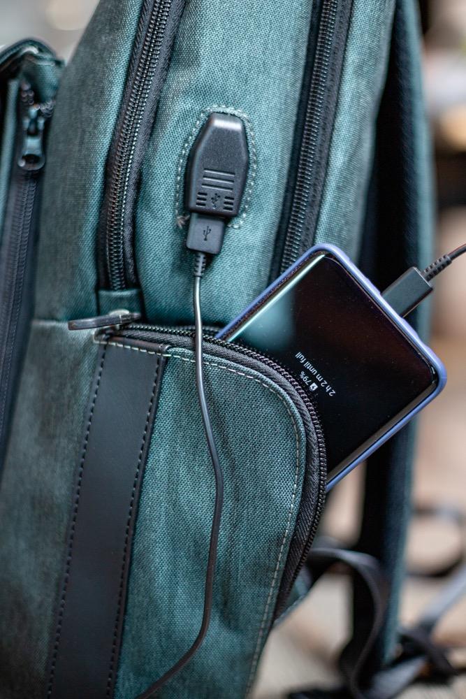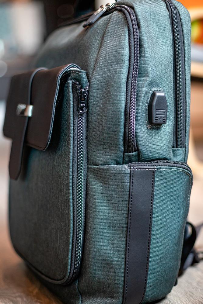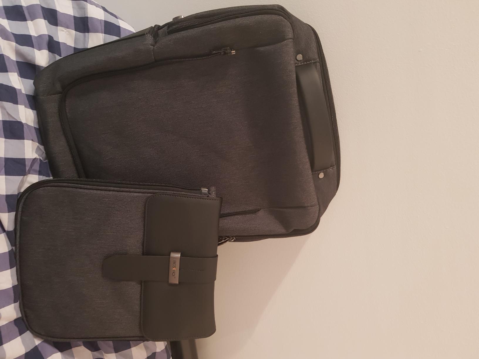 My first impression as soon as I received it, was the quality and texture of the backpack, it is really good and strong, also the zips are good quality too. The charged option works well, charges easy and quick having the power bank inside the backpack. I can carry my MacBook Pro 15" and a 10" tablet in the same area without a problem and still room for other stuff. The extra small bag is a great option when I want to carry just a few things.