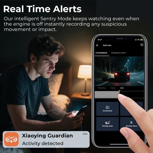 - Go far beyond recording. With built-in 4G, this isn’t a passive camera—the dash cam is your active connection to your car. Watch live inside and out, day or night. Get instant alerts the moment an incident occurs. Locate your vehicle on a map. Lock footage and back it up online—all from your phone, all from anywhere. This isn’t just a dash cam. It’s your command center on the go.