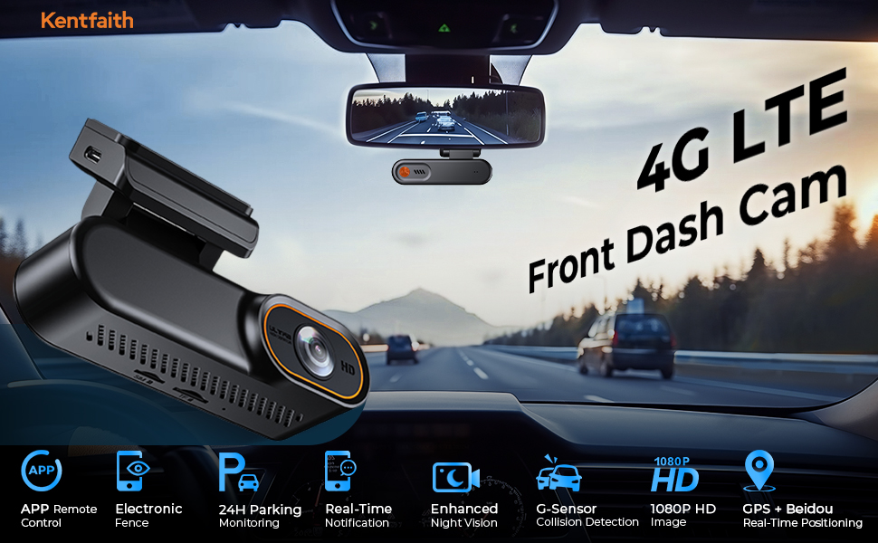 - * 1080P HD Recording with Enhanced Night Vision: Kentfaith 4G LTE dash cam never lets dark hide a thing. 1080p cameras record the road ahead in crystal-clear detail. Thanks to the enhanced night vision feature, the front dash camera delivers sharp, clear video even in total darkness. From busy commutes to midnight parking lots, you’ll always see the full picture—and feel fully protected.