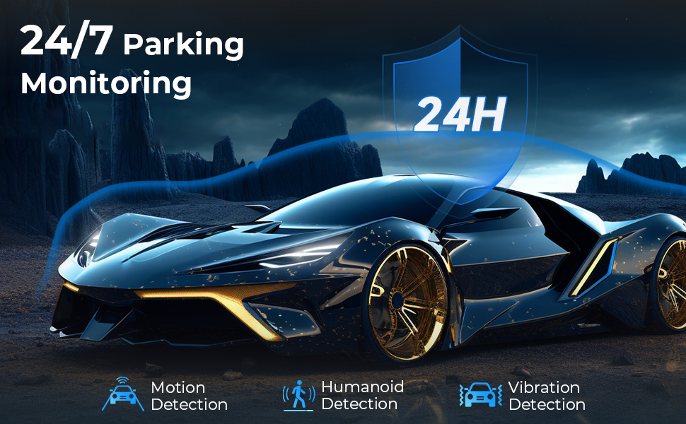 - * 24H Parking Monitoring & G-Sensor Collision Alerts: The front dash cam protects your car proactively with radar detection and G-sensor. Receive instant app alerts when suspicious activity is detected. The car security camera is ideal for preventing vandalism or theft while your vehicle is unattended. An OBD power supply enables 24/7 all-weather parking monitoring.