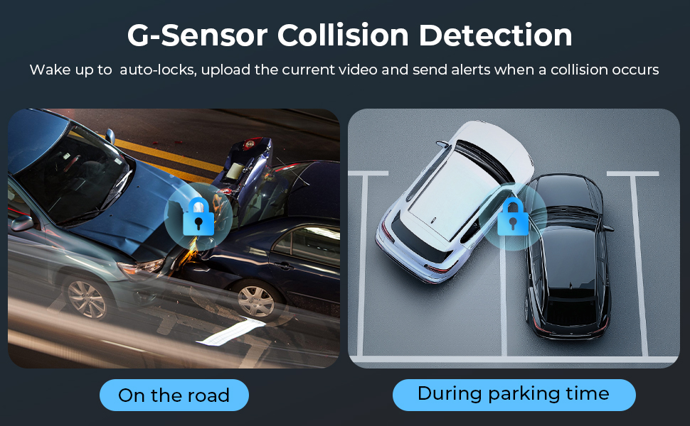 Yes! The built-in G-Sensor detects collisions (on the road or during parking). When triggered, the front camera for car automatically locks the current video, uploads it to the cloud (if enabled), and sends an instant real-time notification to your phone via the app, keeping you informed of incidents even when you’re away.