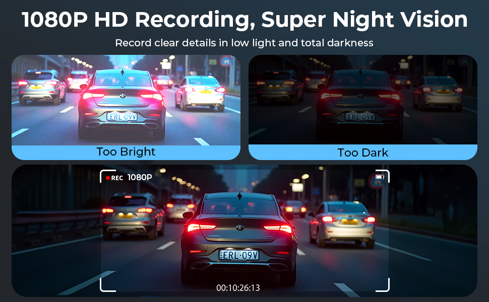 1080P HD Recording Night or Day, Nothing Escapes Your Front Dash Cam