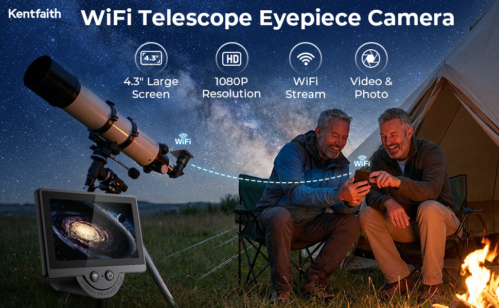 Telescope Electronic Eyepiece with 4.3in Screen, WiFi Live Stream, Capture 1080P Photos & Videos, Rechargeable, Kentfaith