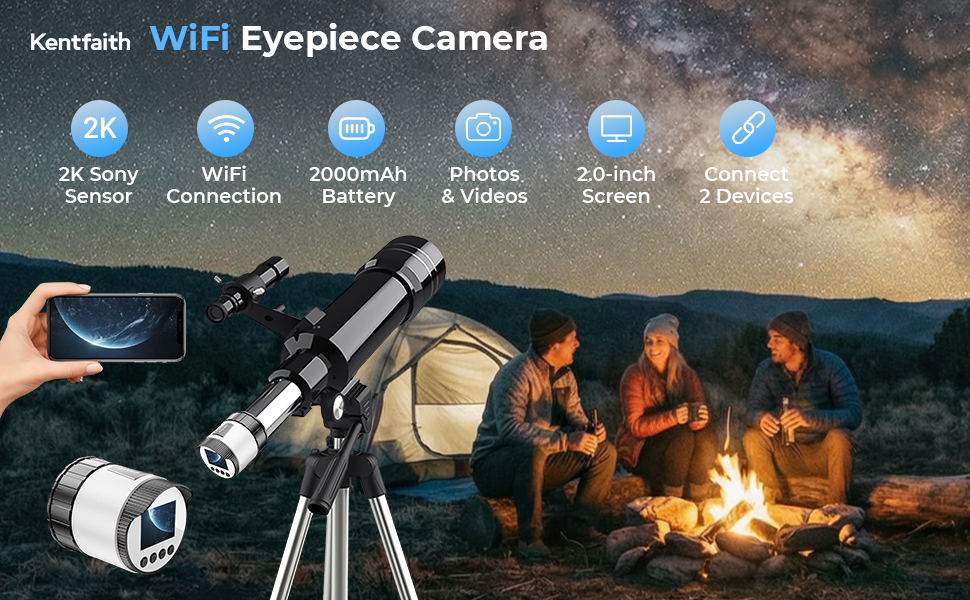 Telescope Electronic Eyepiece with 2K 30FPS Videos, WiFi Live Feed, 2-inch Screen, 2000mAh Battery, Kentfaith