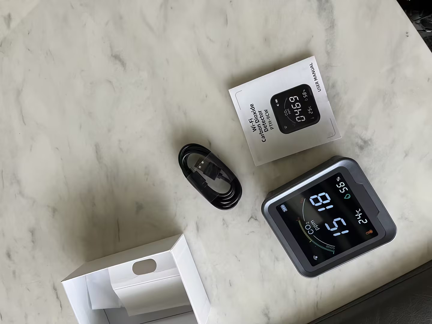 My wife has had a headache for the past few months and I decided to find out if elevated CO2 levels could be the cause. Well, I was surprised at how much CO2 accumulated in our house. A quality monitor like the MOES WIFI Air Quality Monitor CO2 Detector with Temperature is very useful! I like that this monitor can switch from C to F as I use F temperature here in the US. It is also equipped with a rechargeable lithium battery with a capacity of 2400 mAh, which makes it ideal for camping trips with my propane heater. Carbon dioxide or CO2 is a harmless gas in the atmosphere, but when its concentration increases inside a home, it can cause health problems for the people living there. Humans and animals exhale CO2 as a natural function of respiration. Therefore, when a house is overcrowded and there is insufficient air exchange with the outside environment, CO2 levels can increase. Ground cover is a process that can occur in homes built on old agricultural land when wet weather causes the soil to expand and gases, including natural amounts of CO2, to be released into the home. Inadequate air conditioning can also contribute to increased CO2 levels. Another source of increased CO2 emissions is the use of fossil fuels in the home. Therefore, it is very important to have the tools to monitor your situation and alert you when something is wrong. Attached are some photos for a closer look at the device. This is USBC, which is great! The quality of the screen is bright and very legible day and night.