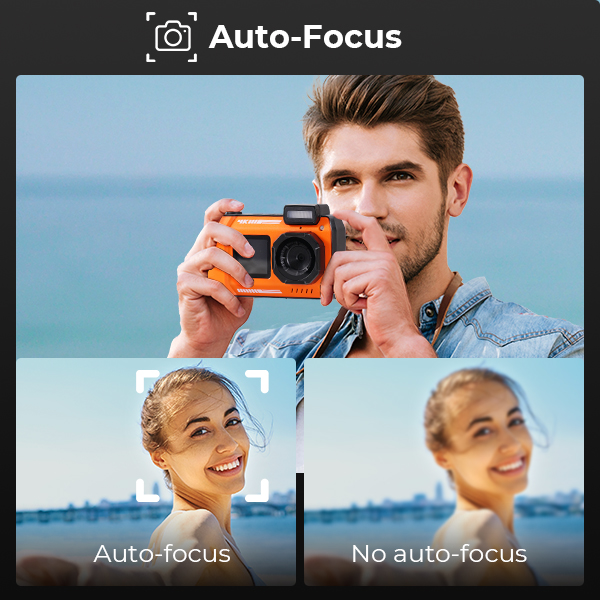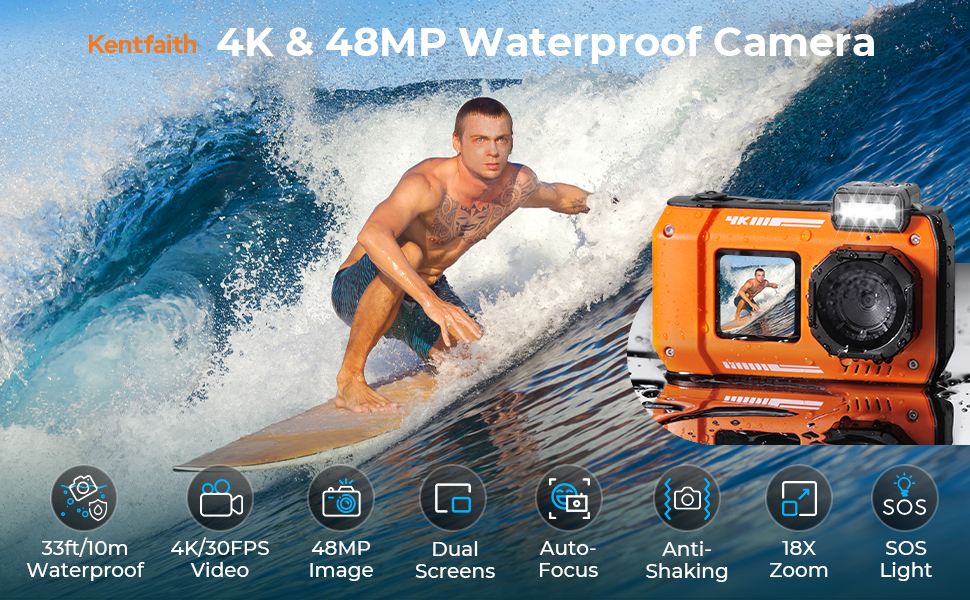- * 4K VIDEO & 48MP PHOTO The stunning 4K video resolution and 48 megapixels help you capture sharp and clear moments of excitement, showcasing the true beauty of the underwater world. Plus, the waterproof digital camera supports 18X digital zoom, anti-shake, and auto-focus, so the tiny details in the distance are also easy to capture with great clarity, even in the dynamic underwater environment.