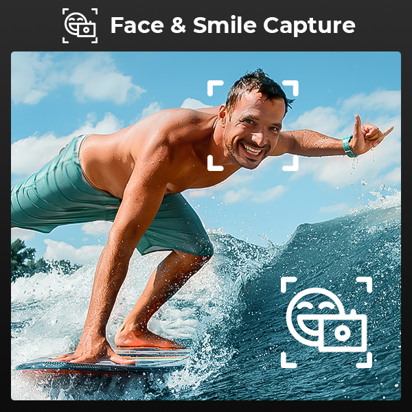 Our water resistant camera automatically takes pictures when it detects a smile or a face, capturing the most lively and authentic moments. It's a great for capturing a smiling shot of someone who is notoriously camera-shy.