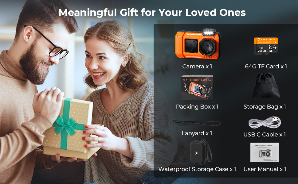 - * 33FT/10M UNDERWATER CAMERA With waterproof capabilities up to 33ft/10m, the waterproof digital camera is your go-to companion for aquatic exploration. Whether snorkeling, surfing, swimming or even shallow diving, it's built to capture every underwater moment hassle-free. Get ready to embark on unforgettable adventures beneath the waves! Note: Don't forget to put the waterproof plug in place before going to water!