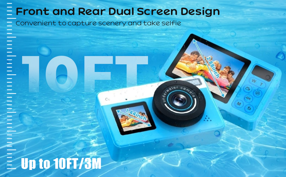 - * 【Dual-Screen Design & Easy Selfies】 The large 2.88in rear IPS screen helps frame shots perfectly, while the 1.44in front selfie screen encourages fun, confident selfies without assistance! Switching between screens is effortless—just press one button! This kids waterproof camera is great for solo explorations or family beach days.