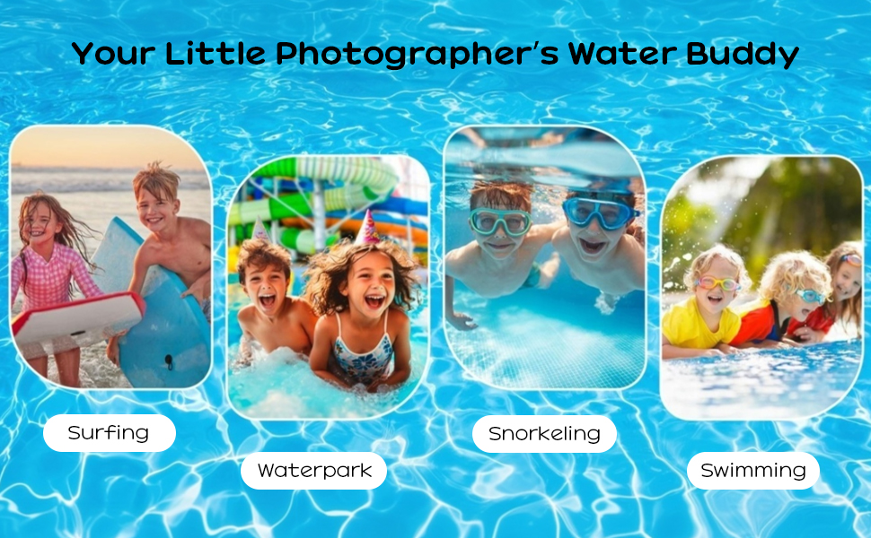 - Built for Water Play: Waterproof up to 3 meters (10FT), our waterproof kids camera for beach is built to withstand splashes, dunks, and underwater adventures No bulky case needed—just grab and go for every watery adventure.