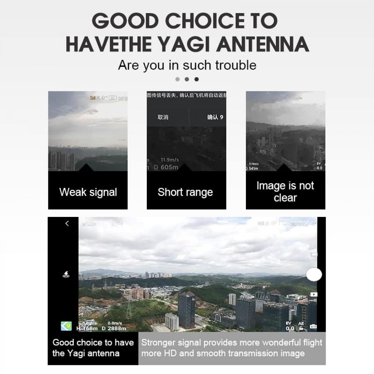 - * By concentrating the RF signal together, just like adding a reflector to a light bulb, it can illuminate farther. The external Yagi antenna can make the signal more concentrated and naturally fly farther