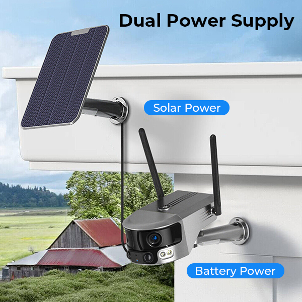 - * Solar Powered & Long-Lasting Battery: Equipped with a massive 12,000mAh rechargeable battery and a power-saving chip, our home surveillance camera provides exceptionally long standby time. The included 6W solar panel ensures the battery stays charged, providing uninterrupted, 24/7 surveillance, no wire needed. It's the ideal security solution for homes, garages, porches, and swimming pool.