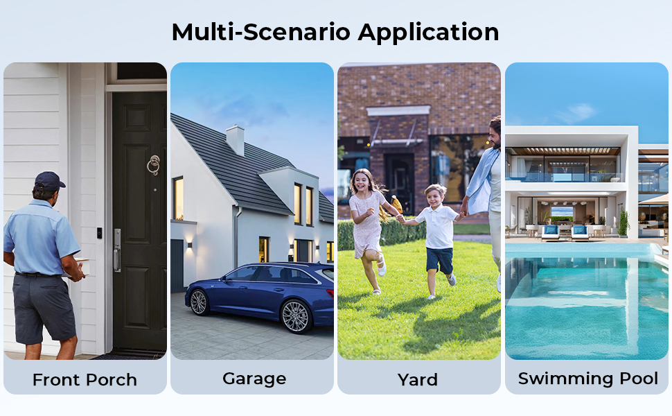 - This home surveillance camera works seamlessly over Wi-Fi, making it perfect for homes, small businesses, garages, porches, swimming pool, and backyard monitoring. Simply connect to your network, and enjoy real-time alerts, live streaming, and full control from your phone—no complicated wiring required.