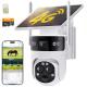 - * 3 Lenses, Dual Views, Double the Protection: With dual lenses, Kentfaith solar security camera eliminates blind spots for ultimate protection. The 120° wide-angle lens provides a sweeping panoramic view for continuous monitoring of key areas, while the PTZ lens rotates 355° horizontally, tilts 90° vertically, and 15X hybrid zoom. Guard your porch, yard, farm, or rural cabin with crystal-clear detail.