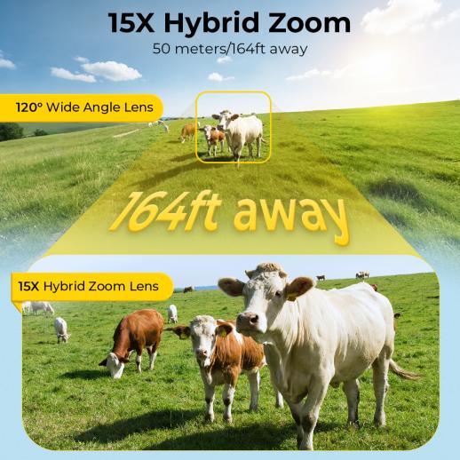 With its 15X Hybrid Zoom lens, the camera delivers sharp details up to 50 meters/164ft away. Whether you need to identify a person, vehicle, or object at a distance, the zoom function ensures clarity without pixelation.