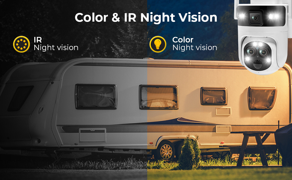 - Color/IR Night Vision – Switch seamlessly between vivid color (day) and sharp infrared (night) to spot intruders or package deliveries, 24/7