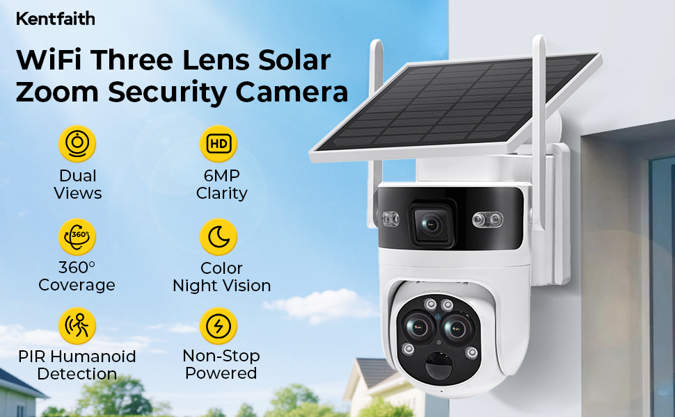 Kentfaith WiFi 3 Lens Solar Security Camera