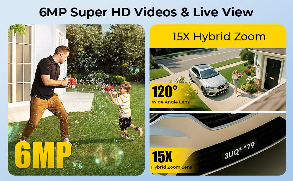 - 6MP UHD Resolution + 15X Hybrid Zoom – See everything in stunning detail