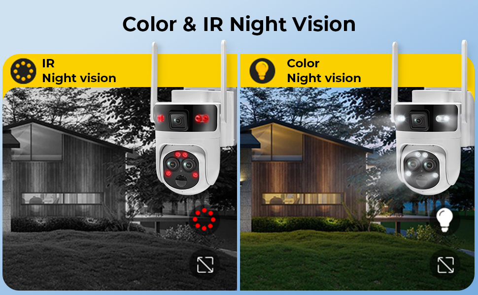 - Color/IR Night Vision – Switch seamlessly between vivid color (day) and sharp infrared (night) to spot intruders or package deliveries, 24/7