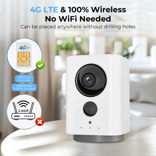 - ·4G LTE & 24/7 connectivity—no WiFi required. Whether you’re in a remote cabin, a rental apartment, or a home with dead zones, this no WiFi security camera stays connected via 4G LTE. It’s like having a personal security guard that never loses signal.
