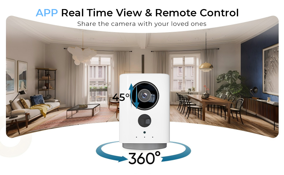 - ·360° Pan and 45° Tilt You can sweep from the front door to the couch, or zoom in on your sleeping cat—all from your phone. No more blind spots, no more guessing.