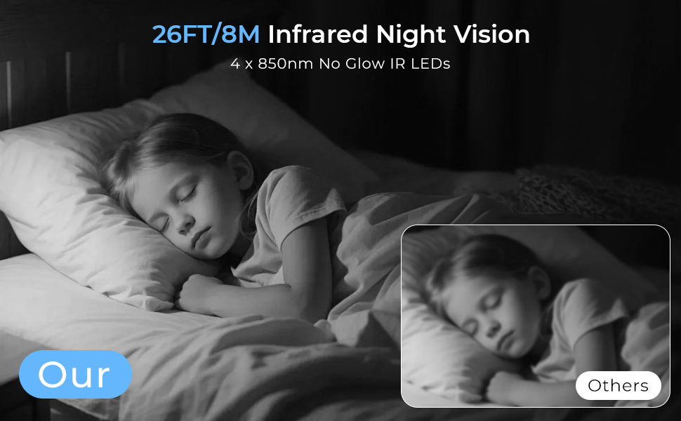 26FT/8M Infrared Night Vision: See Clearly in Total Darkness—No Red Glow, No Detection