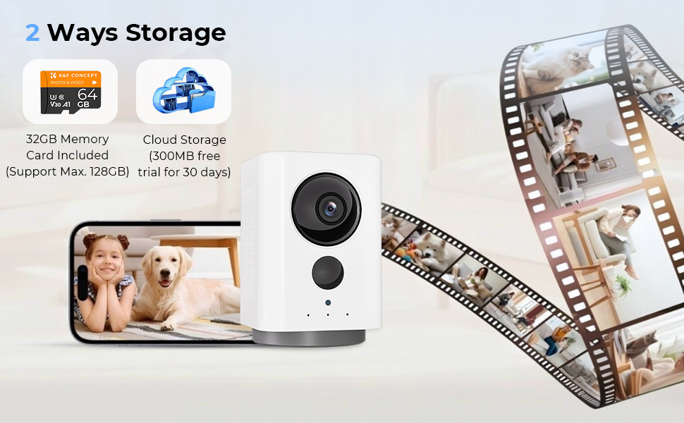 It offers two storage ways: Local Storage: A 32GB memory card is included (supports up to 128GB if you need more). Cloud Storage: You get a 30-day free trial with 300MB of cloud storage. You can choose either or both to save your footage!
