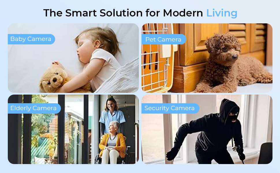 - ·APP Real Time View & Remote Control Open the app, and you’re instantly in the room. Adjust the camera’s angle, check live feeds, or even talk to your family—anytime, anywhere.