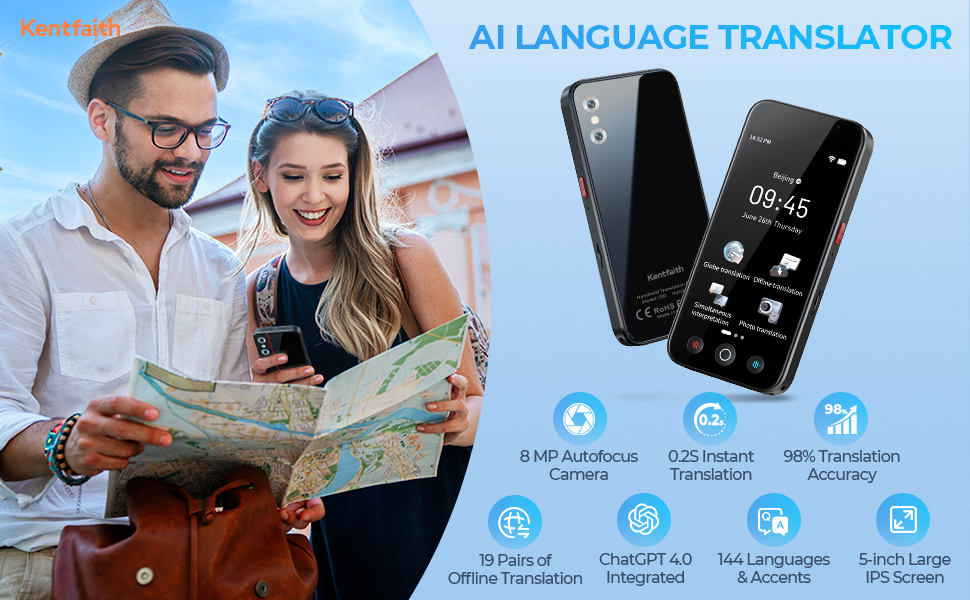 Kentfaith Offline Voice Translator Device, 5" Touch Screen & ChatGPT Integrated