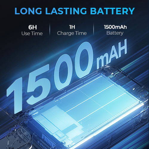 Packed with a large 2000mAh rechargeable battery, it is long-lasting with 10 hours of continuous use, you can rely on it to keep up with your needs. Charging only takes 1 hour via type-C charging, making it ultra-convenient when traveling.