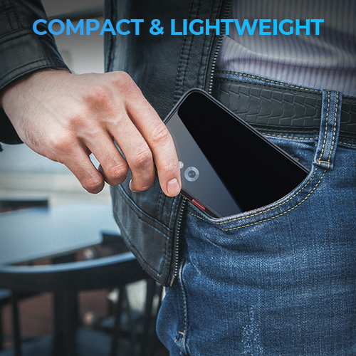 Measuring 12.4*6.0cm/4.9*2.4in and weighing only 104g/3.67oz, it's compact like a little iPhone 5. It easily slips into your pocket or bag, and it comes with a neck strap, so you hang it around your neck and free your hands, taking it anywhere with you.