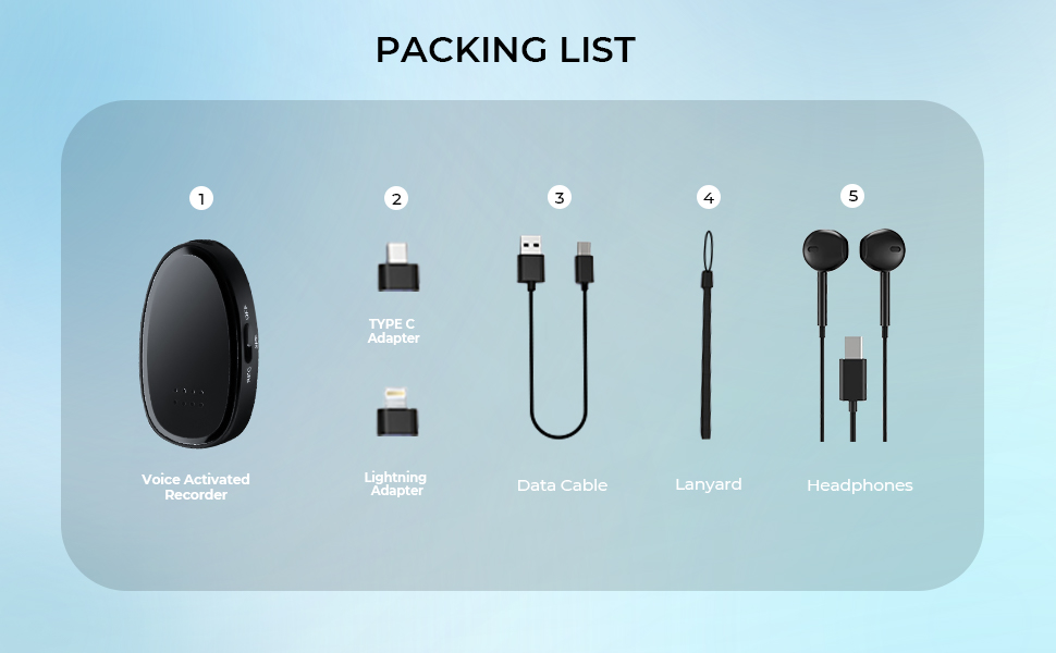 - * 【Crystal-Clear Stereo & Complete Accessories】Equipped with advanced stereo mics, this audio recorder cuts background hums (not voices). Whether jotting down notes or reviewing interviews, every word will come through clearly. It comes with everything you need: Type-C/Lightning adapters, headphones, lanyard, and cable. An ideal gift for professionals, students, teachers, journalists, and podcasters alike!