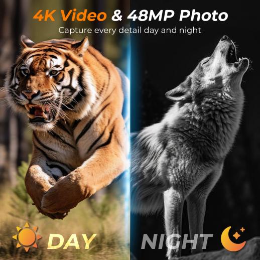 Ultra 4K video brings every movement to life, while 48MP photos lock in razor-sharp detail. From bright daylight to total darkness, the advanced starlight sensor preserves every scene—so every hunt, every trail, and every encounter stays as vivid as the moment it happened.