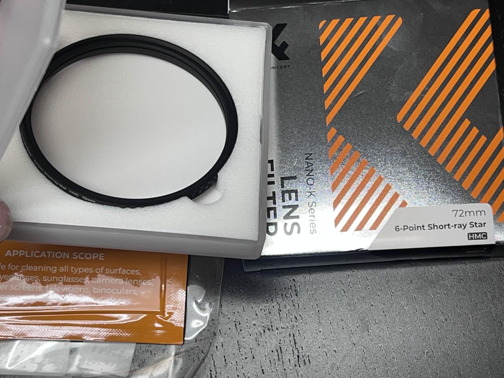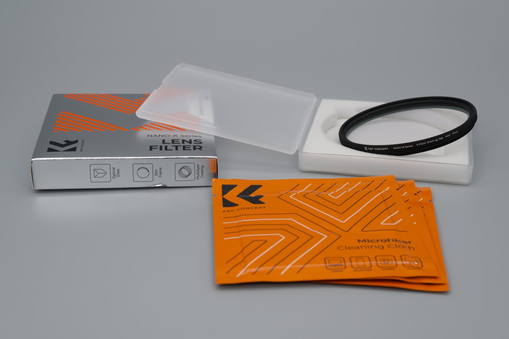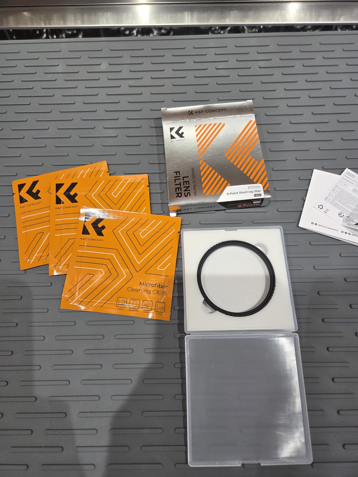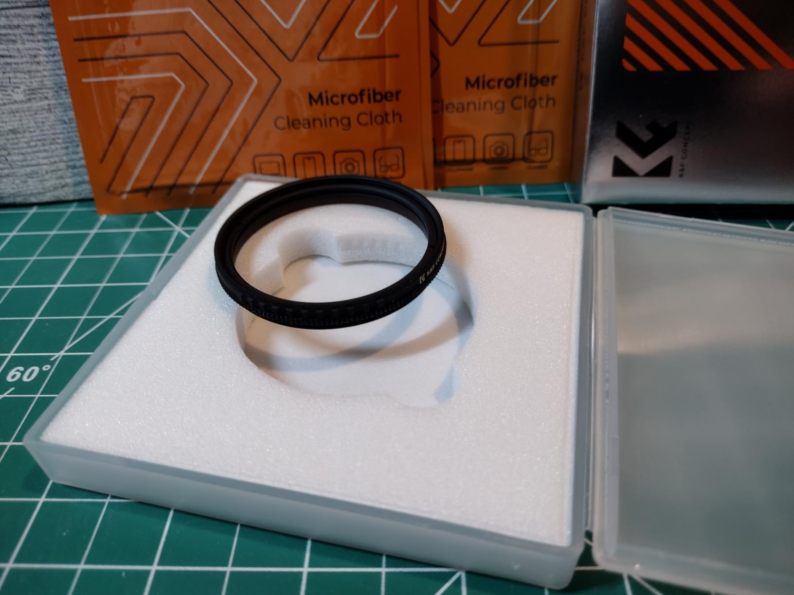 As is typical for K&F filters, the build quality is absolutely impressive. The threads engage smoothly when screwing the filter onto the lens, and the glass rotates easily—though not *too* loosely. The filter comes in a practical plastic case and includes three of K&F's signature individually sealed cleaning cloths.