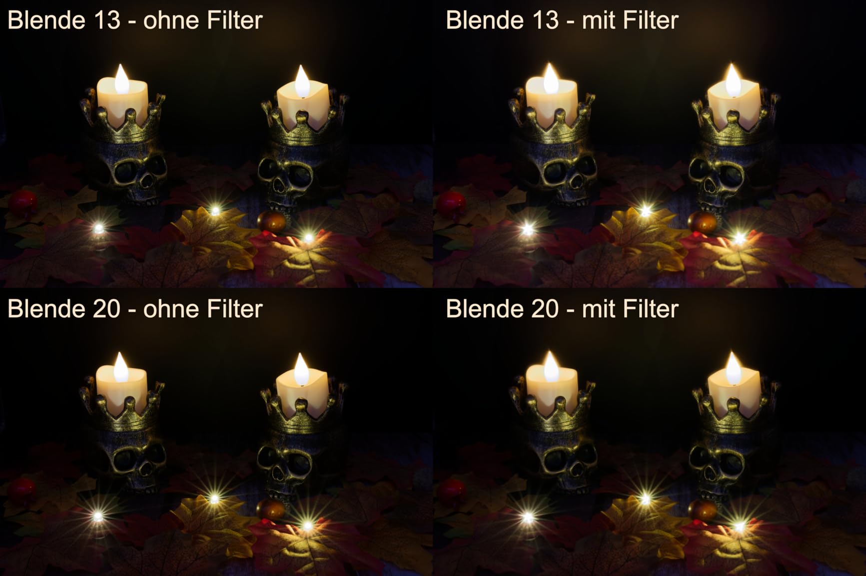 To be fair, however, it must be acknowledged that with most lenses, you can only achieve a beautiful aperture-generated starburst by stopping down the aperture significantly. This isn't always possible, nor is it always desirable. With this filter—provided all other parameters are right—you can achieve a starburst even at wide-open apertures. To do so, the light source must be bright and, ideally, as small as possible. Unlike the rays produced by my lens's aperture, the rays generated by this filter appear noticeably wider. Another striking observation was that, given identical settings, the rays produced by the 6-point filter are shorter than those produced by the 4-point filter. It is perhaps an interesting fact that the effect appears to be more concentrated when fewer rays are involved.