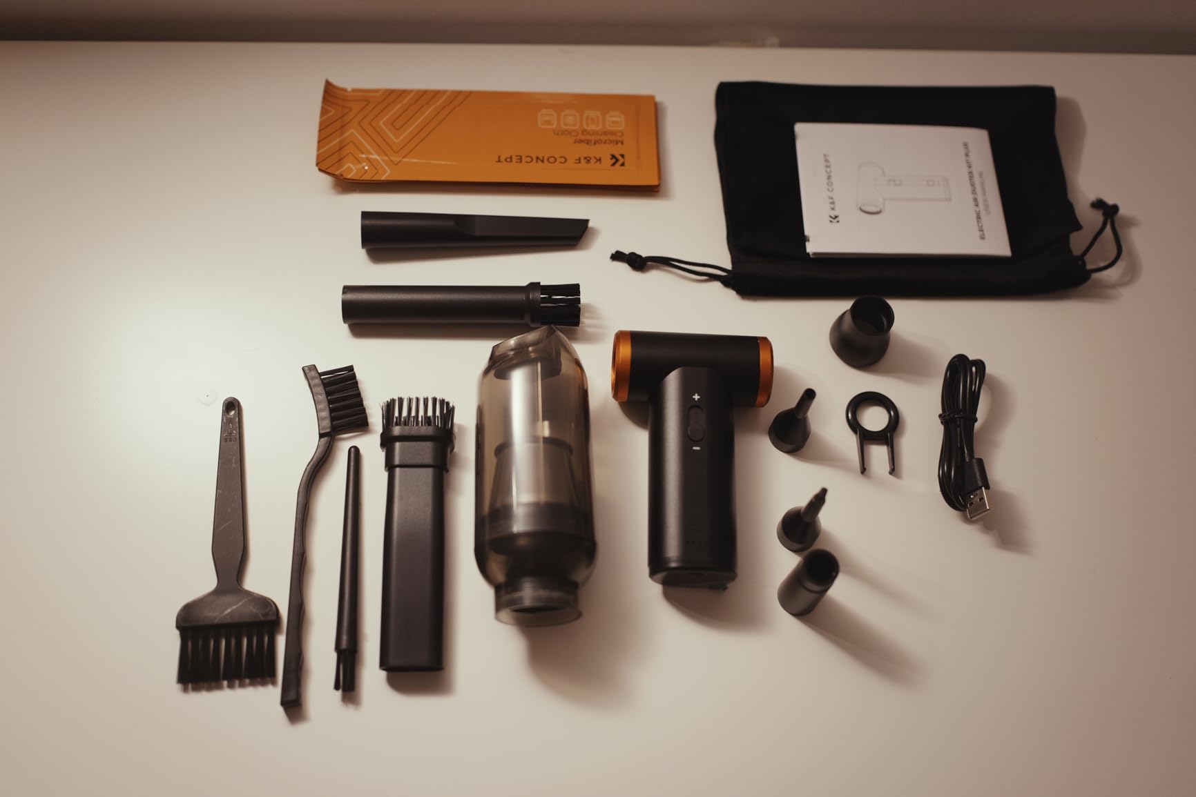 - * [VERSATILE CLEANING TOOL] - Equipped with 9 Nozzles + 3 Brushes + 5 Microfiber Cleaning Cloths + 1 Keyboard Puller❗ The K&F Concept electric air duster is perfect for cleaning electronics like PCs and keyboards, as well as for home, car, and outdoor use. It’s also great for inflating gear or managing campfires, making it a must-have for multiple scenarios.