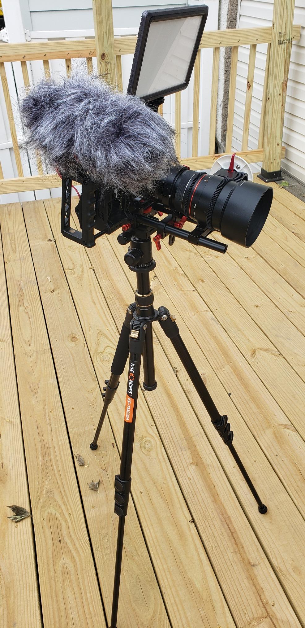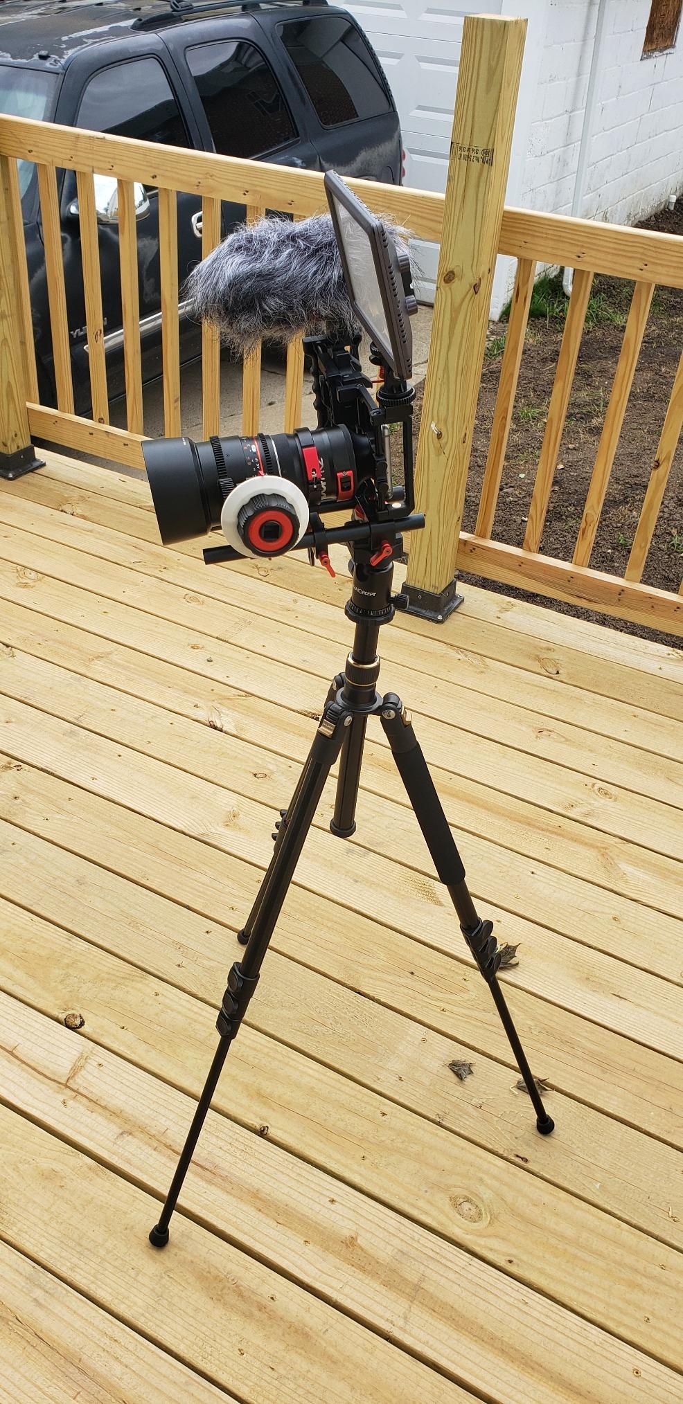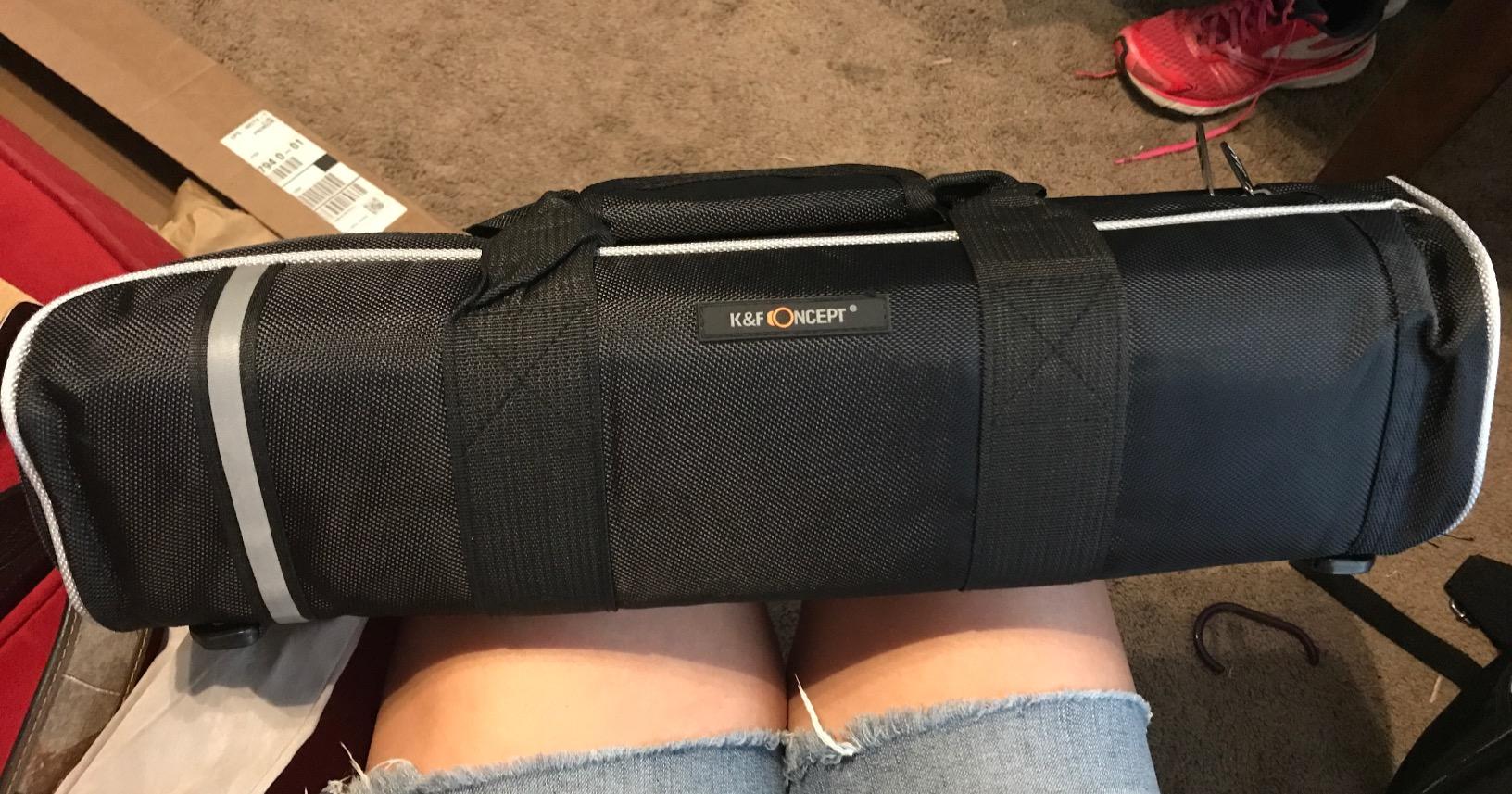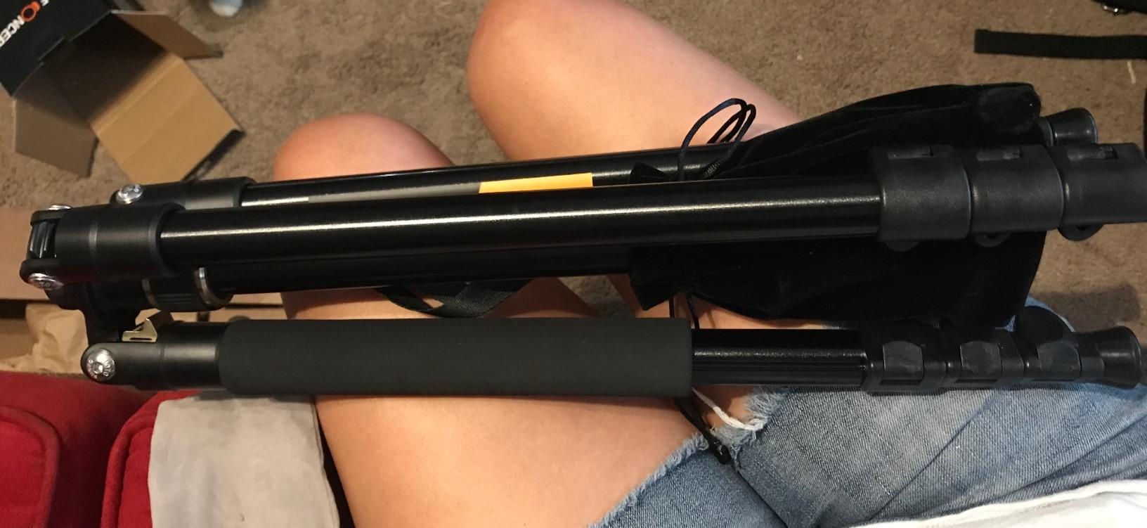 I like this Tripod. this is my second one. The tripod is lightweight EZ to carry. I attended to my camera bag It was EZ to hook up. work great with my setup. Check out my picture to see the setup.I Definitely recommend this Tripod.