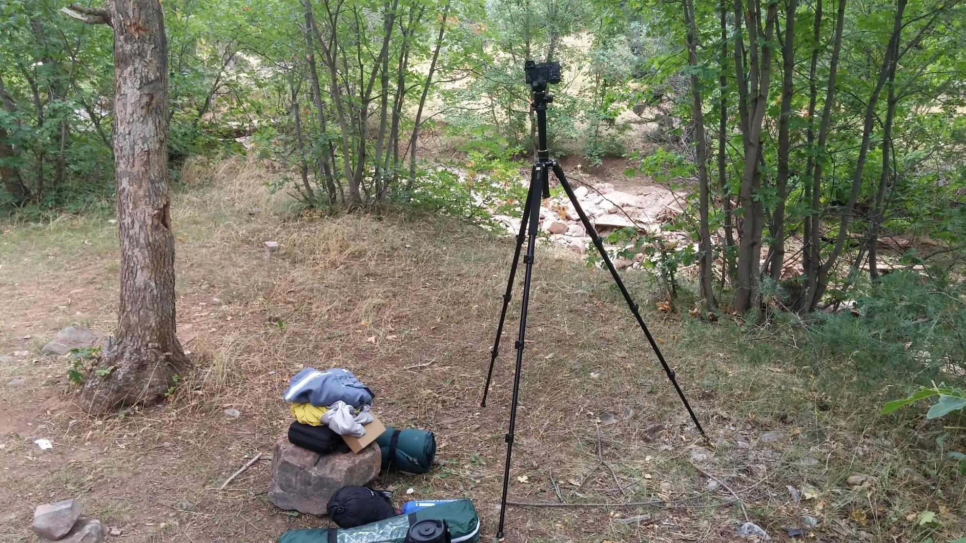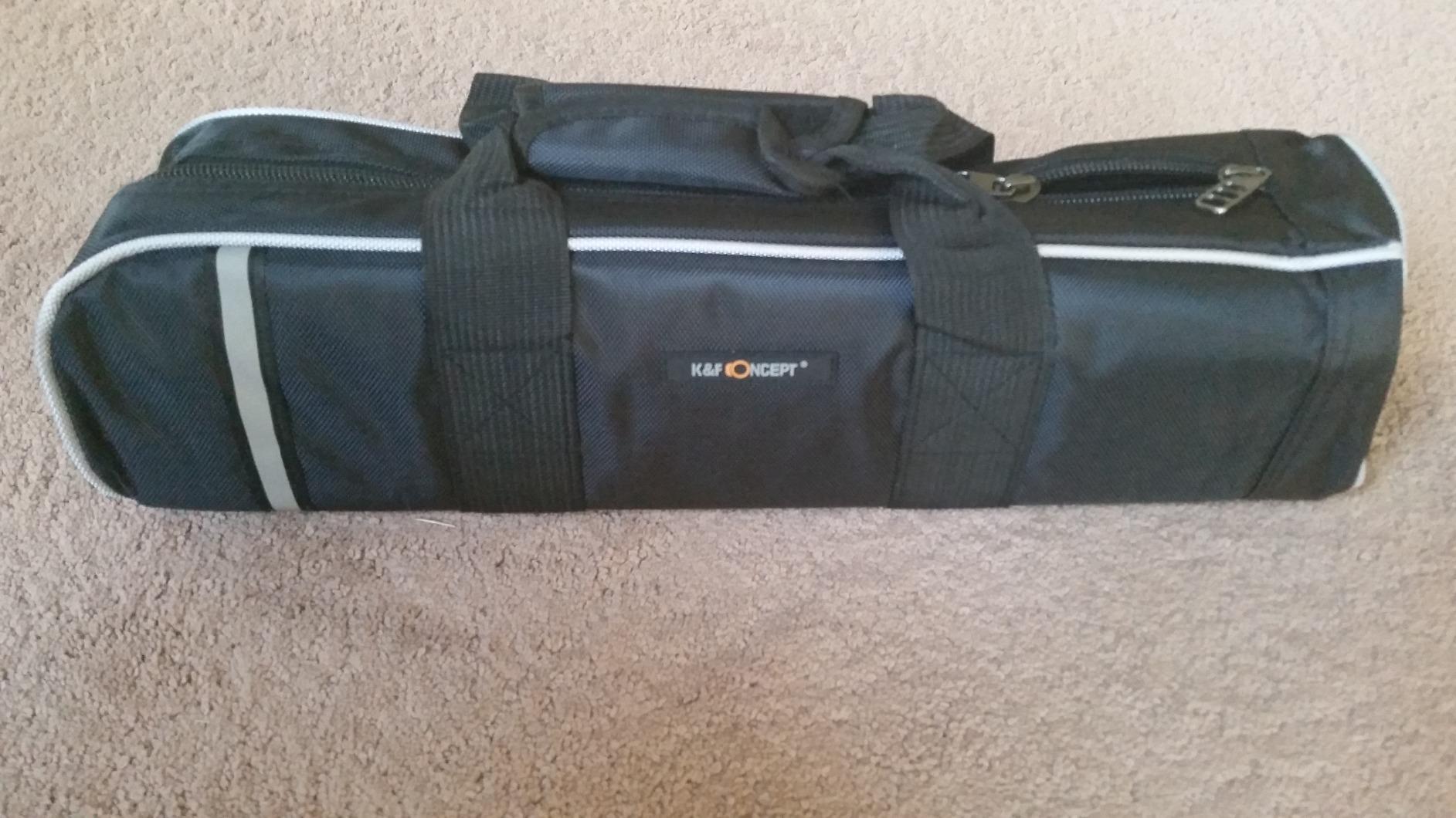 This tripod was light but steady and easy to move and reset. Easy to set up and break down. The travel case is first rate and roomy enough that I didn’t need to force and manipulate it to make it fit.