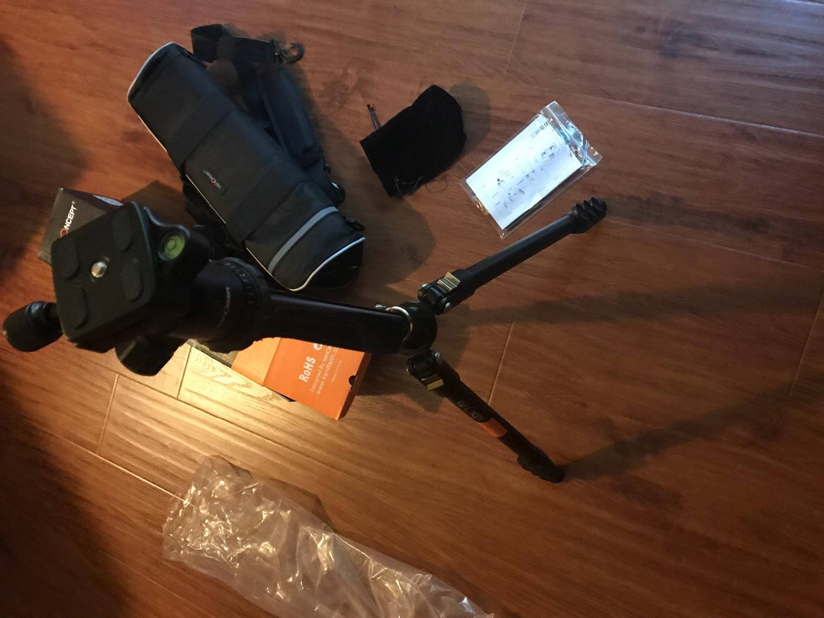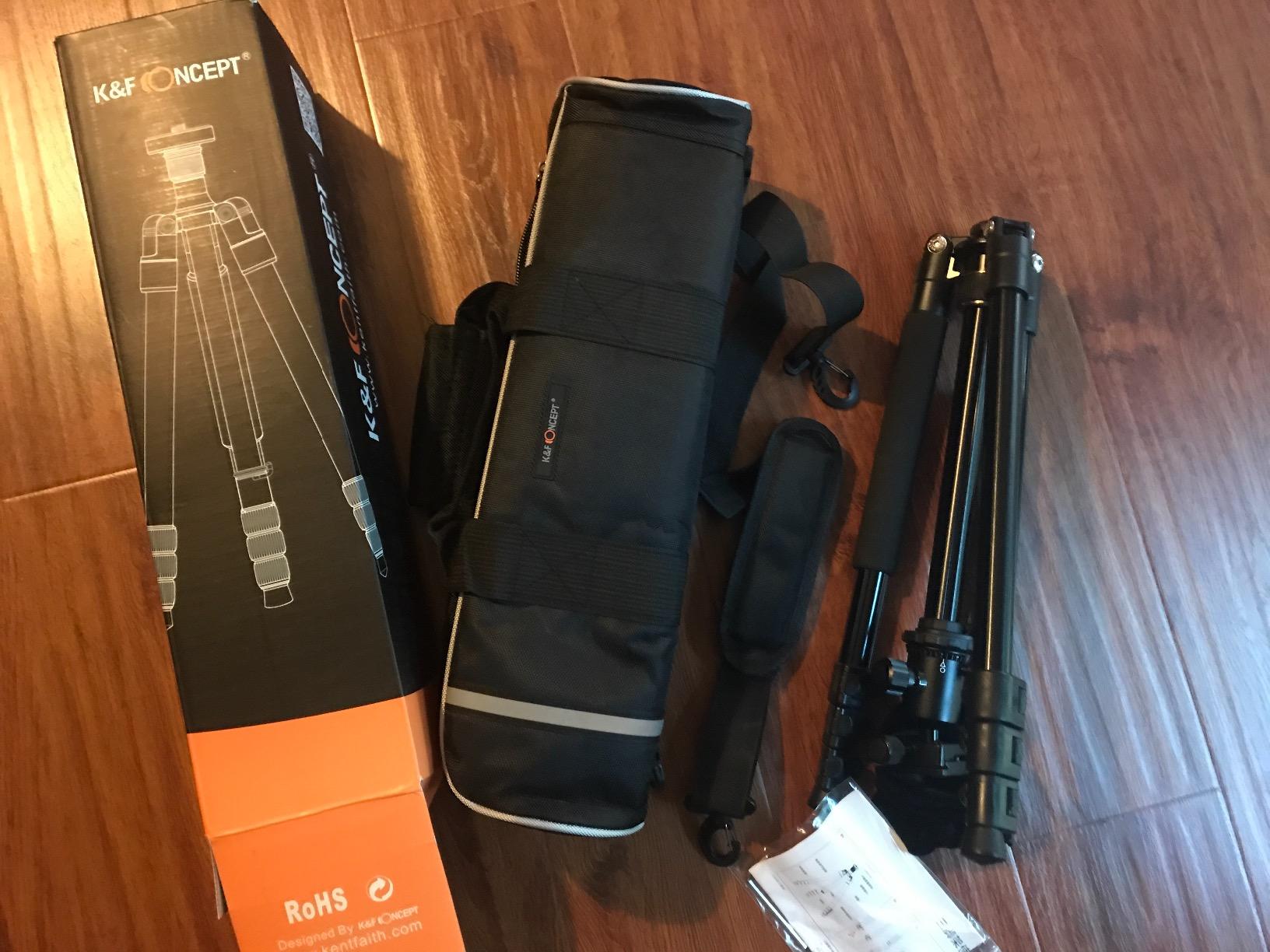 I am increasingly taking photos, so I am looking for a good photo equipment for myself. I do not have a tripod yet, but I have tried several tripods, and it is worth noting that K&F Concept has included an English manual. This was not necessary because of the fairly simple operation, but it allowed me to understand the full functionality of the tripod, which made me impressed by the high quality of the tripod compared to other tripods I have seen in various shops. I was also very impressed by the design of the tripod. In addition, the design makes a very good impression. With the exception of the gold-colored locking element, all adjustment screws and locking mechanisms are easy to operate. Here you first have to do some testing until you get the hang of it. At this point, criticism is appropriate. Perhaps it could have been worked out better. On the other hand, the locks can be tightened well. Other adjustment screws, such as the length adjustment, are very easy to operate and can be held firmly in place. Once the tripod is assembled to your liking and the camera is attached, the whole structure is very sturdy and strong with no wobble whatsoever. I was impressed by the easy-to-read spirit level, the scale on the head for fine adjustment, the removable bracket (which can be locked to the tripod with a quick-release if necessary), and the option to convert the tripod into a monopod. It is reasonably priced, well made, and thoughtfully and stylishly designed.