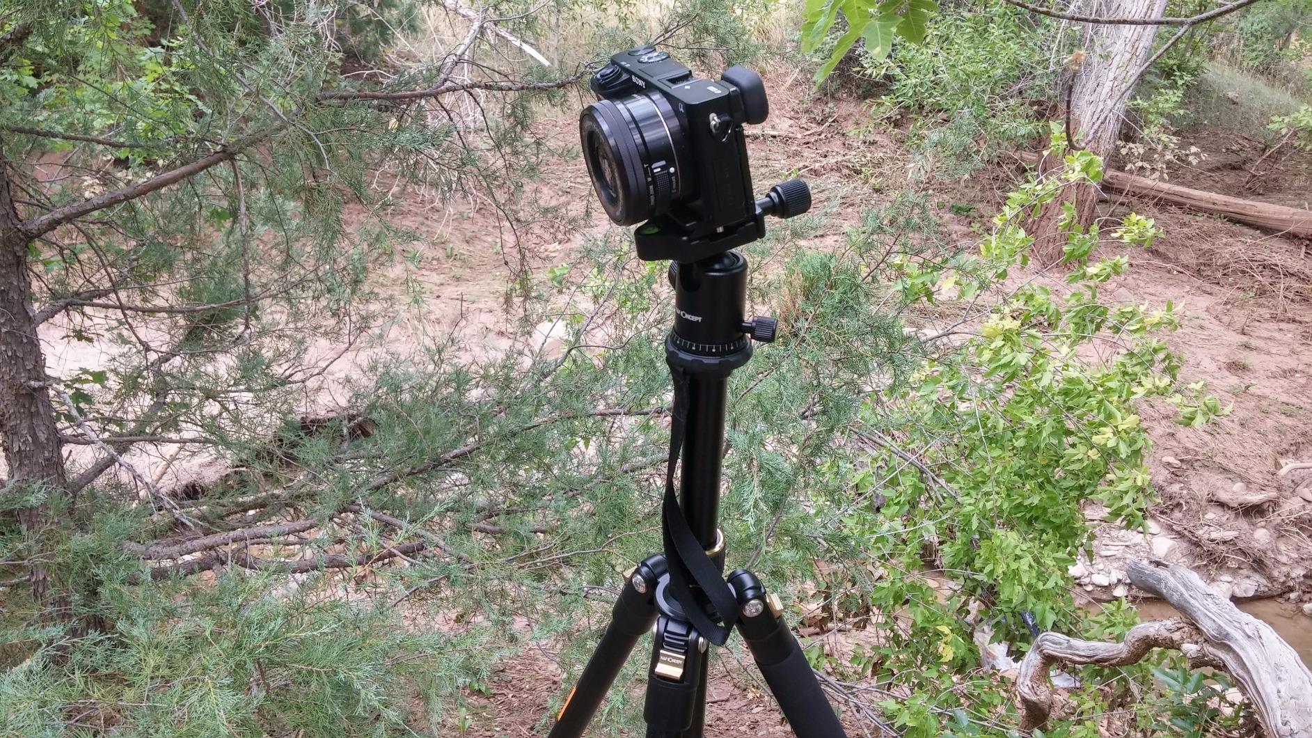 This tripod is lightweight and comes in a really nice carry case. The biggest downside is the ball head, which is pretty cheap, so I replaced it immediately with a ULANZI U-70 ball head and couldn't be happier.