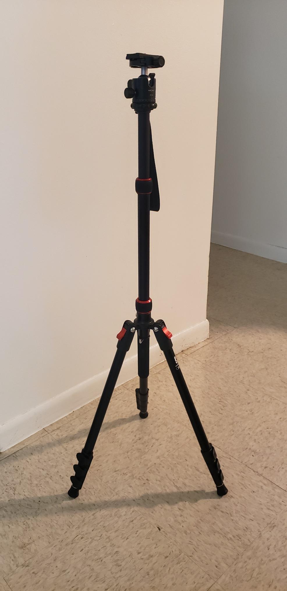 The tripod has good build quality, is very steady even for heavy equipment , is lightweight, folds up very small, easy/fast setting up and comes with a nice carrying case. Good deal for the price!