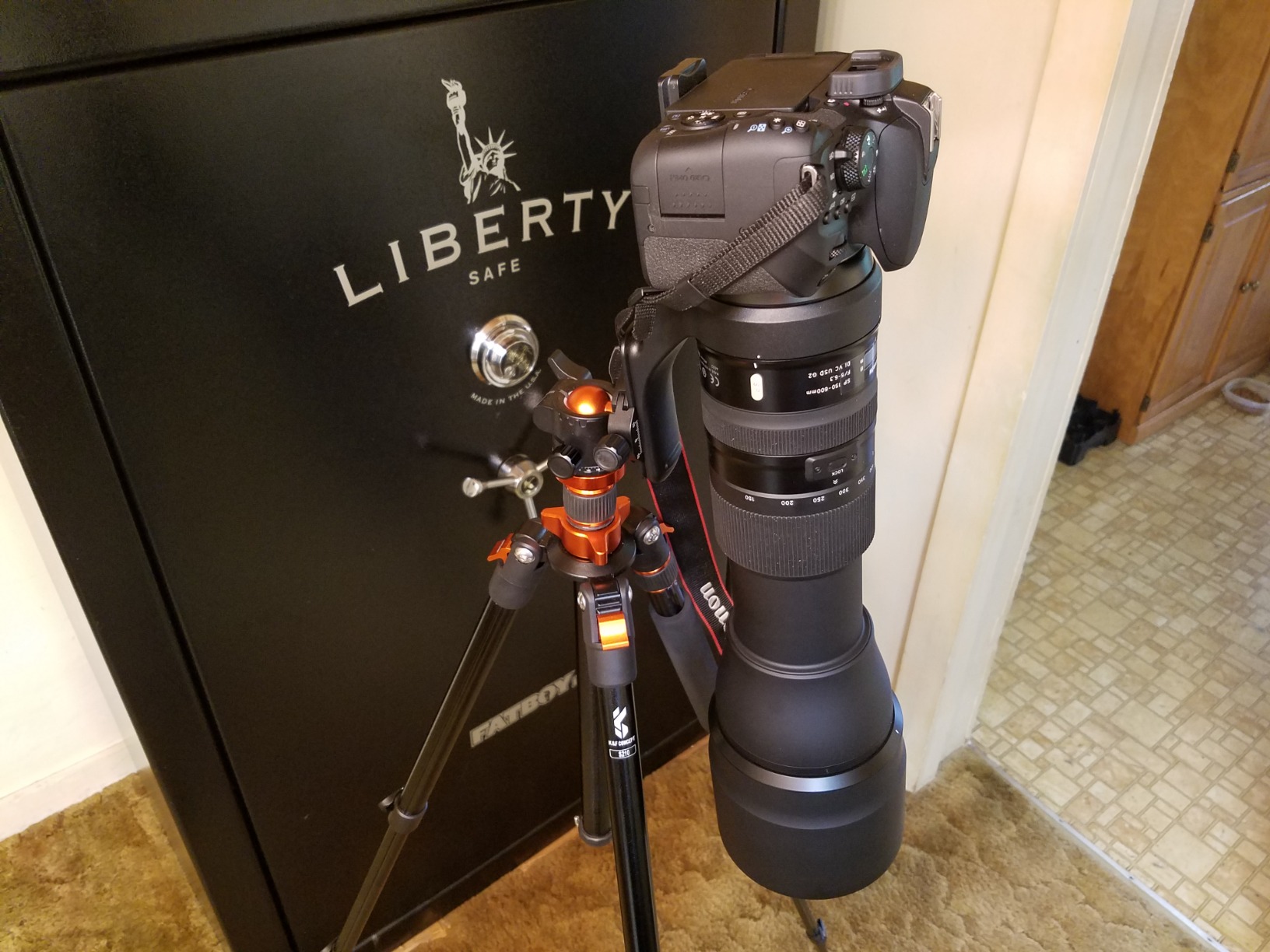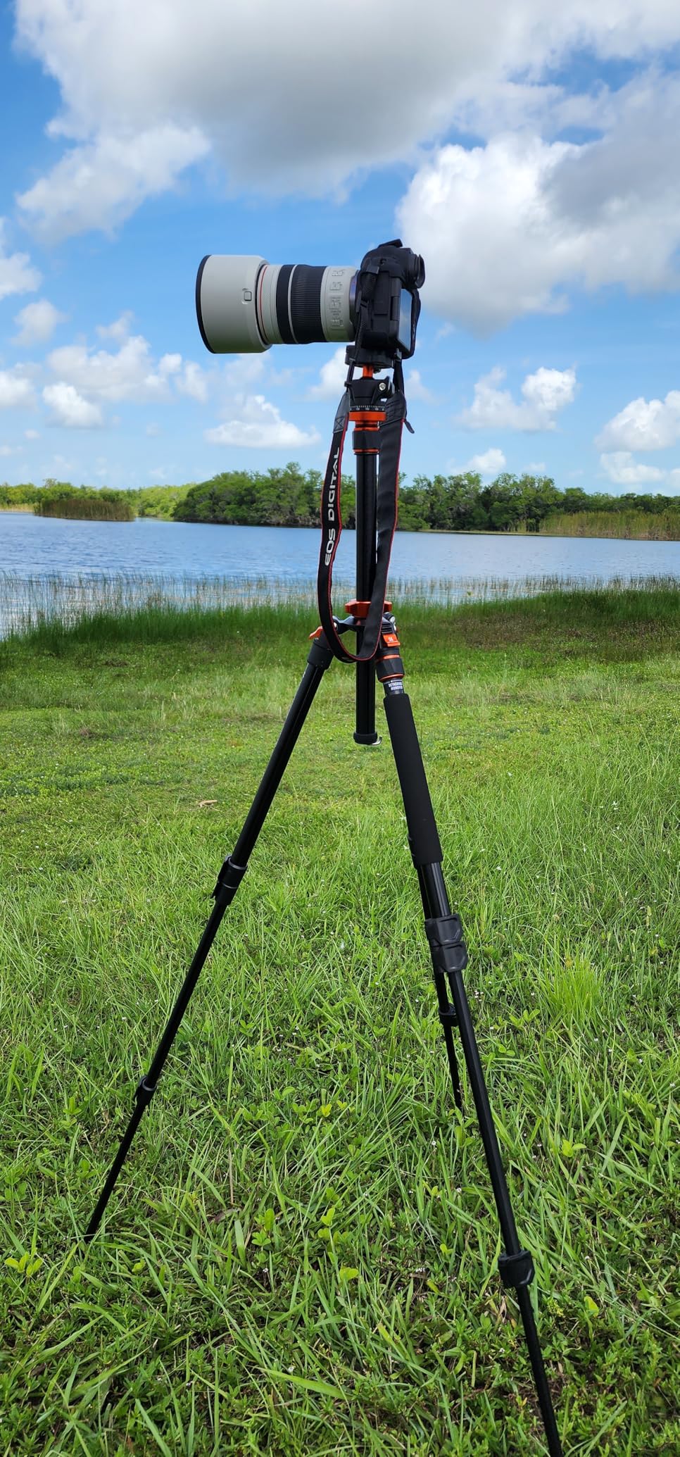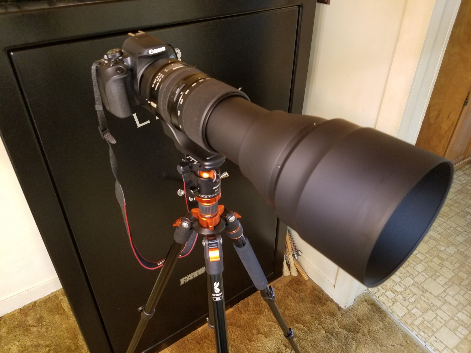 I had to upgrade tripod because of heavy lens just purchased tamron 150 600 and I'm impressed. Its plenty tall and the ball head is nice.had a worry from other reviews that it's hard to tighten to stabilize the weight but I have no issues at all.for the price it works well and no issues at all. I've had it for a few weeks now and was disappointed how the legs would slide on hard surfaces, after trying to remove the metal points on leg bottoms I discovered turning the rubber feet all the way out will conceal the metal points.if outdoors in grass or dirt just screw the rubber back out to expose the points ,now I'm happy again.