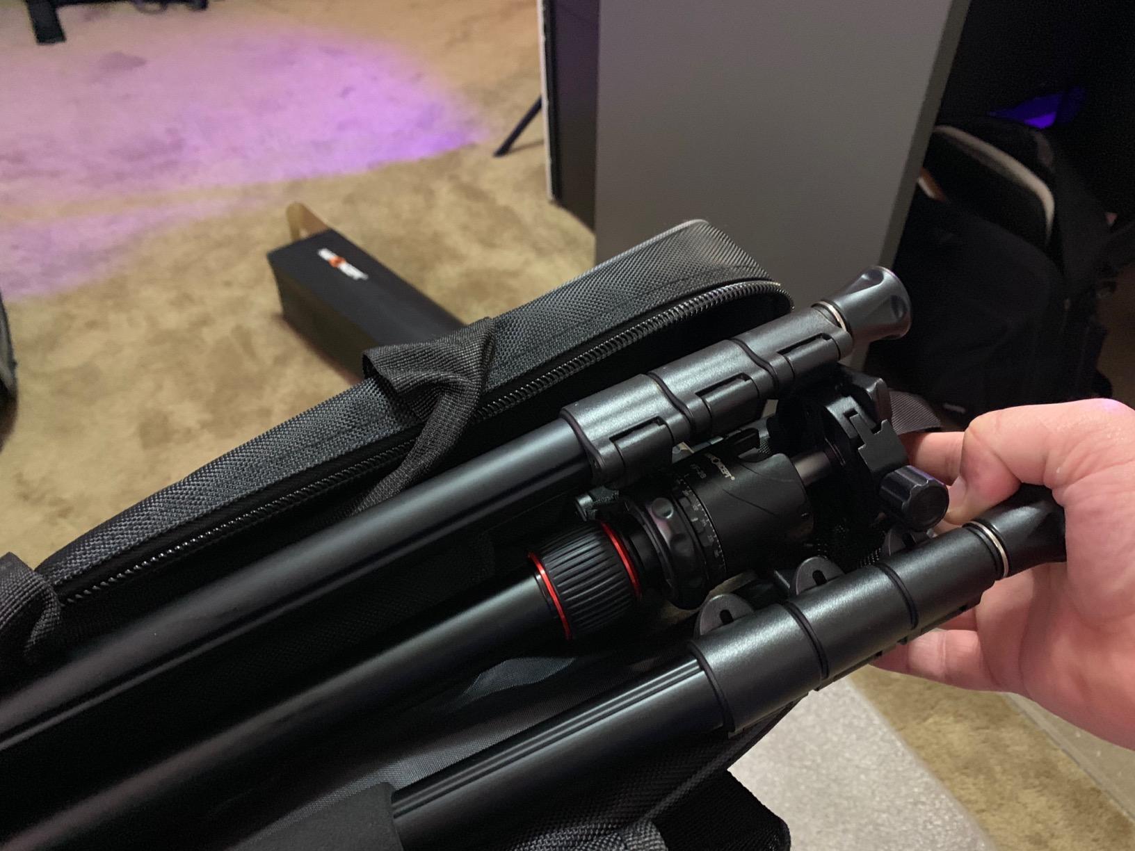 1) Although the handbag is closed, he found it a little bulky (46 cm) but nothing striking, I was used to my old tripod, which reached 38 cm when closed.