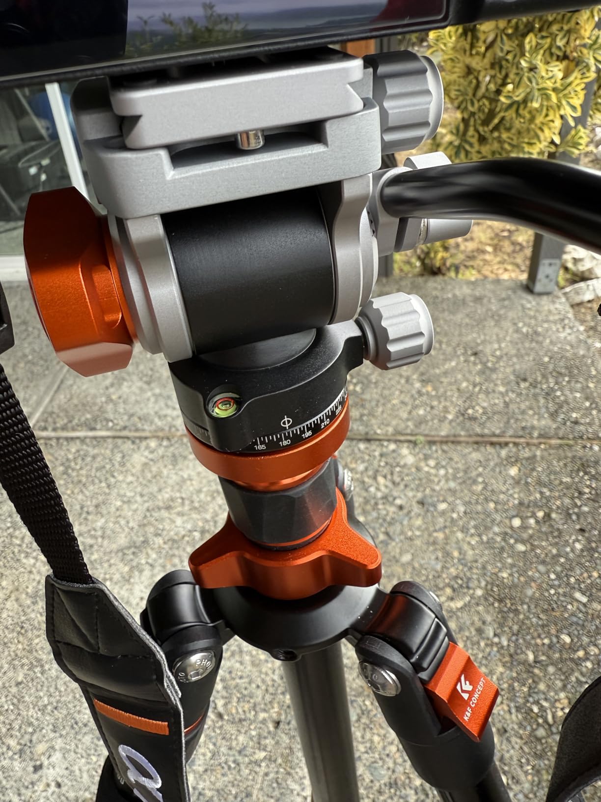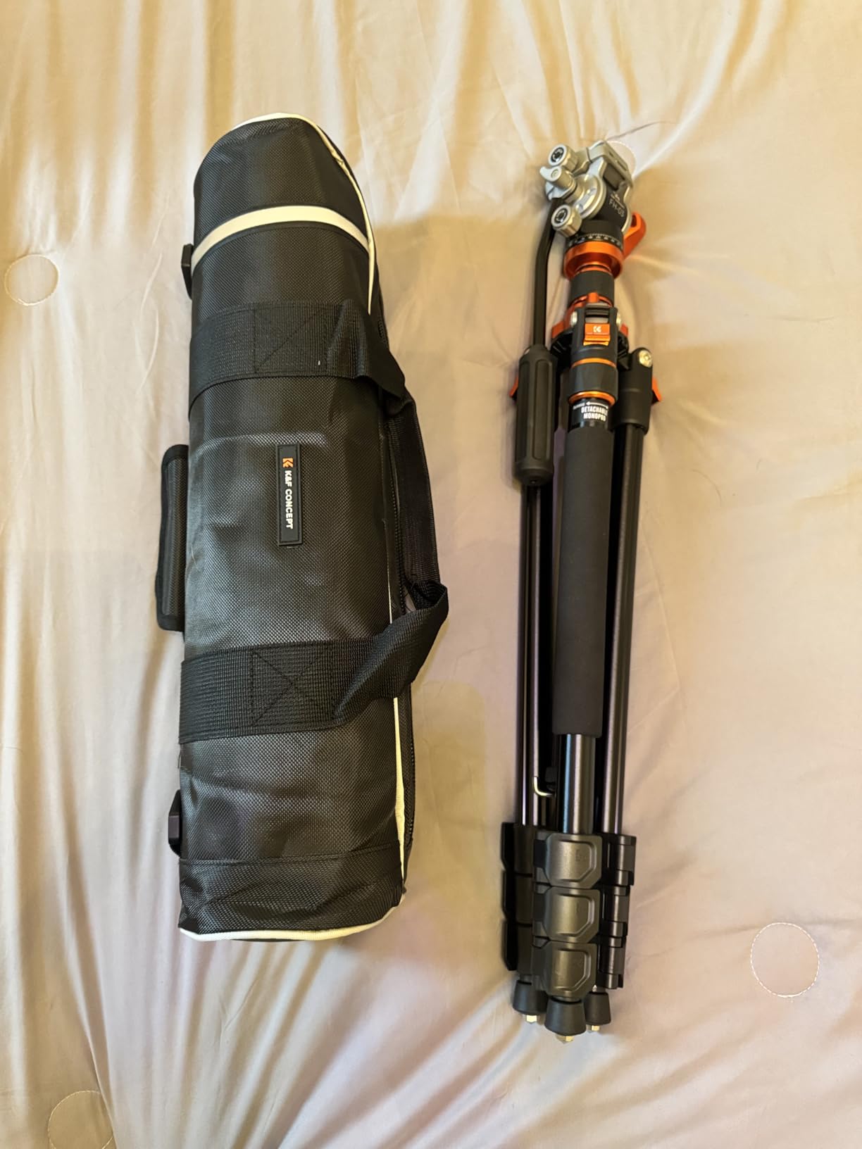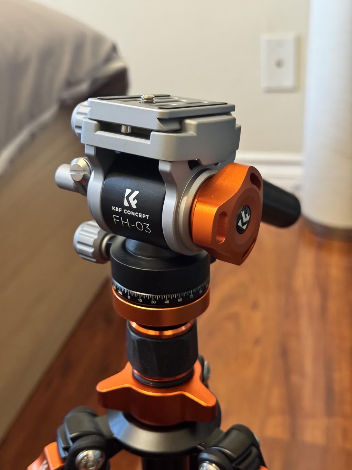 I recently acquired K&F Concept 83 Video Tripod. I am photographer and don’t do much video. But when I do, my tripod which is geared mostly for photos, did not yield good results. That’s one reason I wanted a dedicated video tripod for those occasions where I use my camera (soccer, school plays etc). I wanted a small, portable yet sturdy that operates smoothly while panning the camera. Also I did not want to spend an arm and leg. That’s when I ran into this tripod. This not only checked all boxes but within my price range. I was not expecting much given the price and all the features listed. But after receiving it and setting it up. I am pleasantly surprised. Tripod came in a cardboard box with a carrying case and a wrench. Tripod has aluminum body so it’s slightly heavier than a typical carbon fiber model. It’s much lighter than the aluminum tripod I had earlier. If you haven’t read the details, you could easily think of it’s a carbon fiber model. I felt more confident with its weight as it presented with a much better build quality. Coming to tripod legs, they are strong, with leg locks. I like these locks much better than the regular twisty cylindrical/rotating locks. This tripod leg locks have resistance and give you a Solid click sound when you engage them. When the tripod is fully extended. It becomes 83 inch tall behemoth making you look like a lilliput. While it’s good to know it can go that tall, I would never go beyond 72 inches in practical use. Now coming to the best part of the tripod - it’s head moves buttery smooth when you pan. Using handle on this tripod to pan the camera is a joy which I really missed while using a camera tripod. The upward and downward motion is also smooth. The arca Swiss compatible plate is a machine finished aluminum, unlike the regular plasticky ones that you find on other tripods. Now coming to color scheme on the tripod, when I saw on the pictures, I felt it’s cheesy until I saw the tripod in hand. After assembling and looking at the tripod, it’s black legs, coupled with orange accents along with aluminum finished tripod plate, I kind of liked the overall color scheme. It looks and feels like a premium build. I took this to film a community event in my neighborhood and performed flawlessly! By the way did I mention, it comes with a carry bag made with strong denier fabric. Overall I am more than pleasantly surprised with this tripod in terms of its quality, function and affordability. If you are in the market for a video tripod, you should seriously look this K&F concept 83 tripod. It’s an affordable premium quality video tripod. You will not be disappointed!
