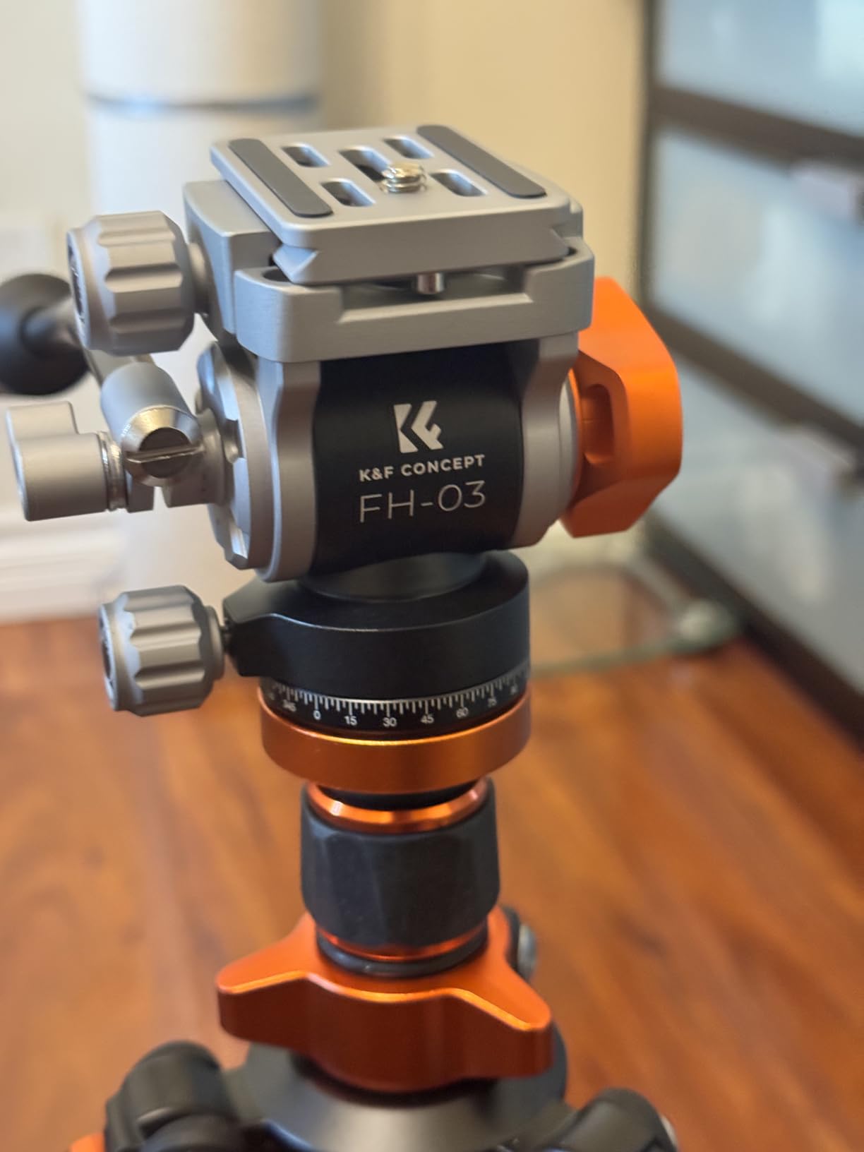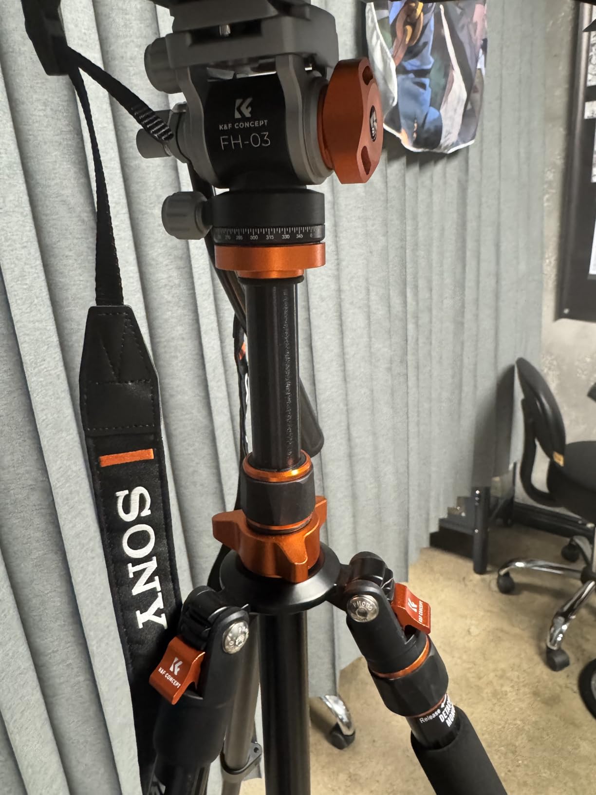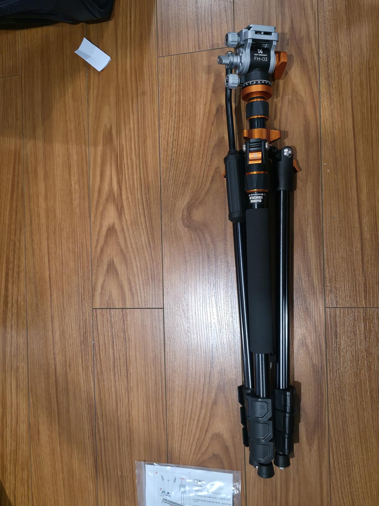 This tripod and head combo surprised me. Very sturdy, smooth to adjust, and the K&F FH-03 head holds my Sony camera perfectly. The quick-release and the metal build feel premium. Light enough to carry around the studio but solid when fully extended. Great value for the price—definitely recommend.