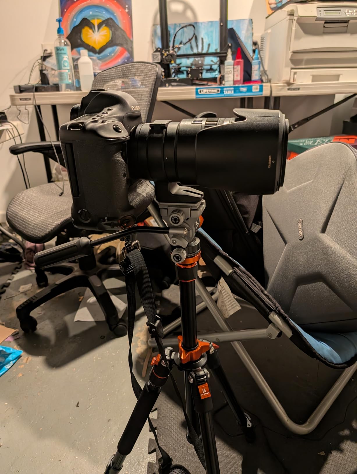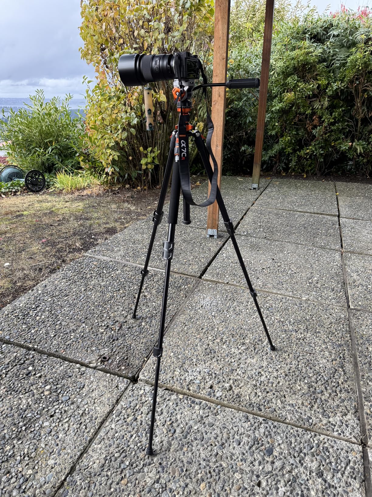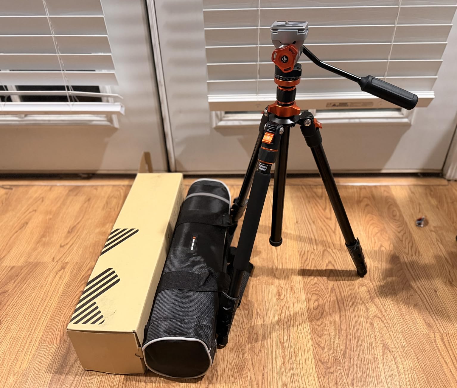 Also, bonus, it still seems very stable when extended to max height. Not common with budget tripods. I do wish the legs had a locking mechanism though, so they couldn’t accidentally collapse closed, but it does make setup more efficient.