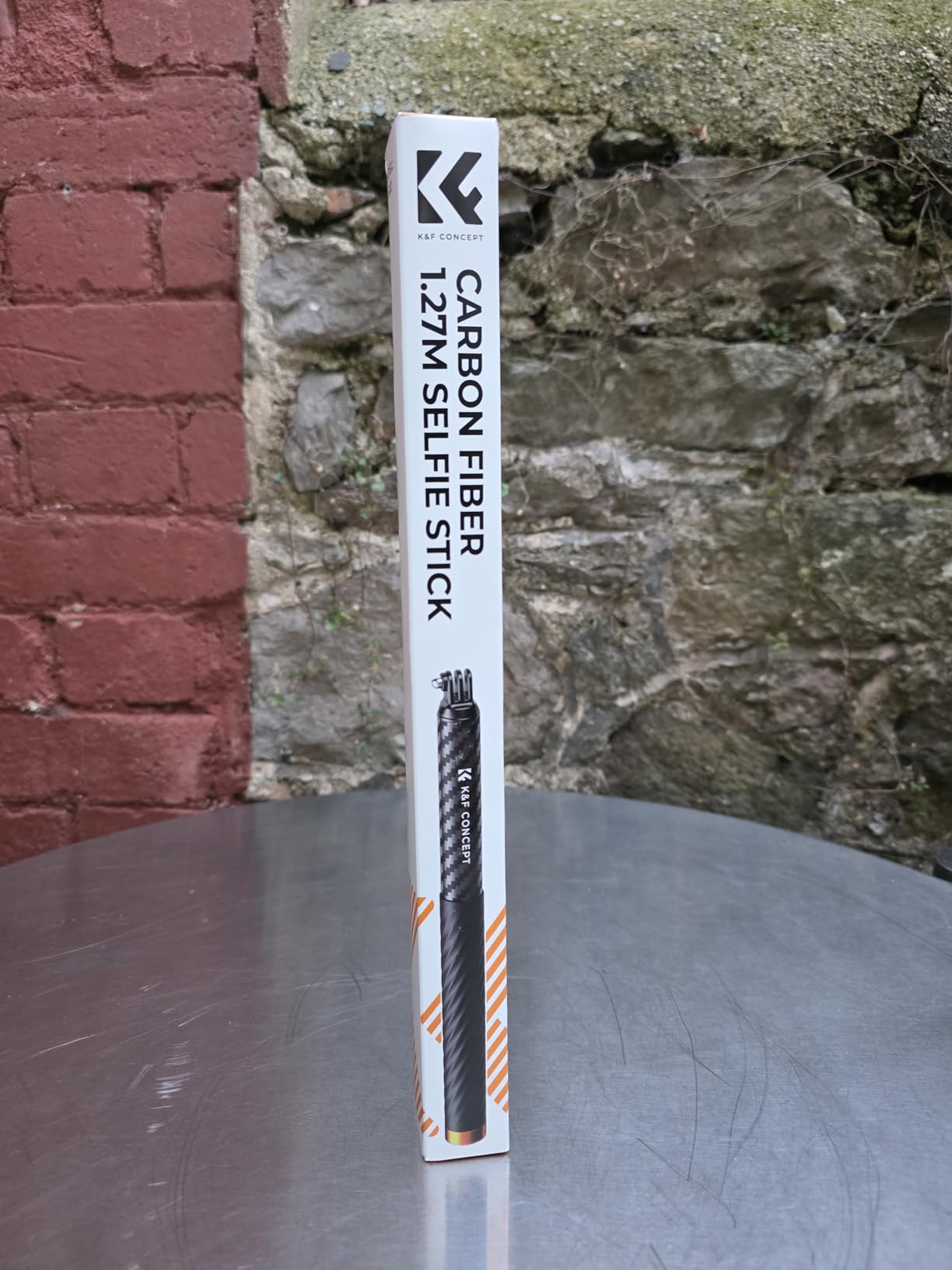 This selfie stick from K & F gives you that extra reach , it extends out to 60” and retracts into itself at 12”It’s very light being carbon and has that quality feel to it.It locks with a simple twist at whatever length you require and comes with the adapter to attach your action cam.Being 12” folded it’s not the easiest to stow away.