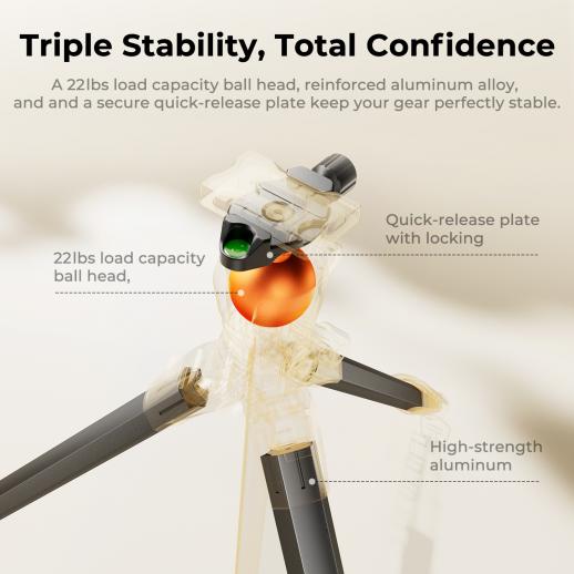 - * 【Stability and Durability】 This aluminum tripod supports up to 22 lbs, handling a full-frame DSLR with telephoto lens. Shoot low, invert your setup without tools or hang extra weight from the integrated hook for stability anywhere.
