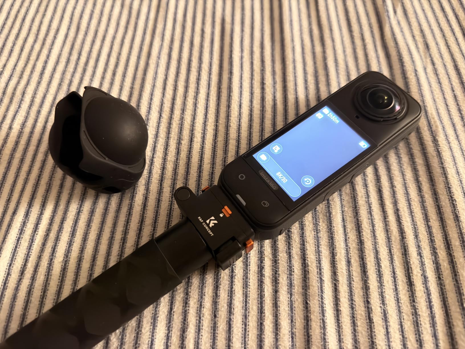 As a moderate Insta360 X5 user, it takes it almost everywhere. From dusty trails in South Texas, vacations, and roadside adventures with my furry friends, I needed a selfie stick that would match my lifestyle, so I opted for the K&F CONCEPT Magnetic Quick Release Foldable Selfie Stick. Most selfie sticks that I've tried are flimsy, tedious, or just plain boring. My first impressions right out of the box were the build quality, which is crafted from high-strength aluminum alloy, giving it a rugged, durable feel without being too heavy. A high-quality silicon lens cover comes with the kit as an added bonus, nothing spectacular, but a thoughtful gesture. The handle is ergonomically convenient for my big hands and also wrapped in soft anti-slip silicone, which makes it extremely comfortable to hold, even during long filming sessions in scorching heat. In addition, the stick is equipped with a magnetic quick-release with a nifty safety lock that is easily accessible and conveniently placed, so it doesn't get in the way or accidentally flipped. When extended, it reaches 89 cm (35 inches), which is a more than generous amount of length, for a more cinematic depth. I was skeptical about the invisible selfie stick effect not working properly, but it works flawlessly, a major plus. The cherry on top, in my opinion, is the foldable design, which makes this stick a game-changer. When folded, it fits nicely into my backpack or a handy napsack, even with my camera attached, so it'll be ready for action with an easy flip and click. As an added option, there is a 1/4” screw interface on the bottom of the stick, which is compatible with tripods, clamps, or other action camera mounts. Although, I haven't tried this feature; I'm sure it'll come in handy.Overall, the K&F CONCEPT Magnetic Quick Release Foldable Selfie Stick delivers everything I need for my on-the-go shooting lifestyle. Its rugged build, comfortable grip, flawless invisible-stick performance, and brilliantly compact foldable design make it a standout accessory for the Insta360 X5. Whether I’m on dusty trails, road-tripping with my pets, or filming spontaneous moments, this selfie stick keeps up without slowing me down. It’s reliable, convenient, and thoughtfully engineered. It’s easily one of the best upgrades I’ve made to my camera setup. Highly recommended! A+