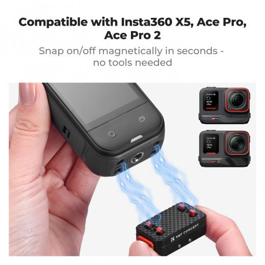 - * [Dedicated for Insta360 X5]: This magnetic bracket from K&F Concept is speicially designed for Insta360 X5, can be installed and released quickly. Safety lock design for extra secure. With built in expansion connection, allowing the action camera expand to head strap, backpack mount, chest mount, selfie stick, tripod and other action camera accessories to meet different shooting needs
